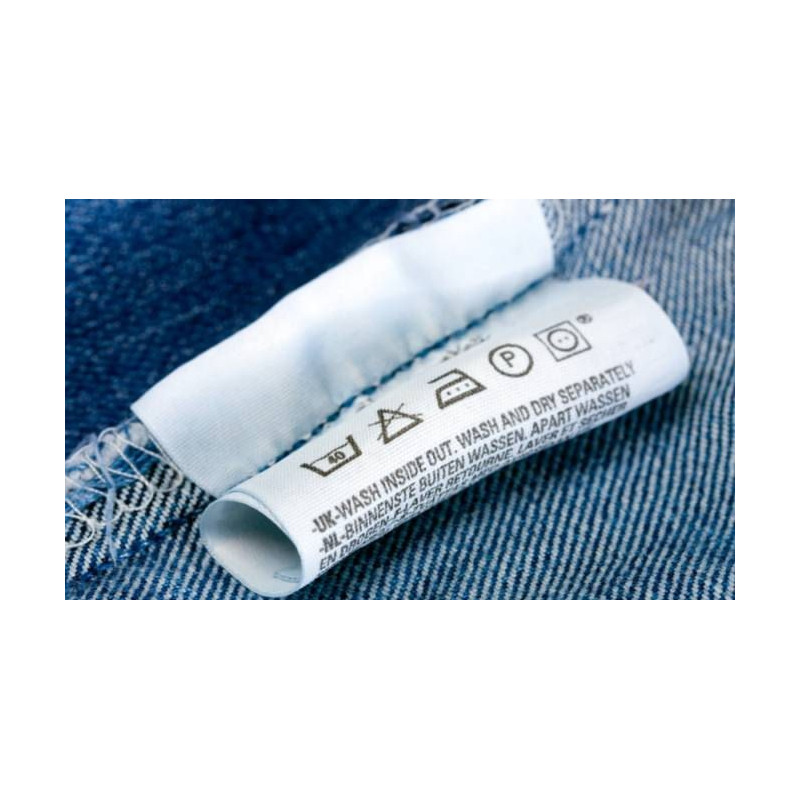 Diese Bänder zur Etikettierung von Jeans oder stückgefärbten Kleidungsstücken sind mit Thermotransfer- Harzfarbband für Textilien bedruckbar, abrieb-und waschfest.