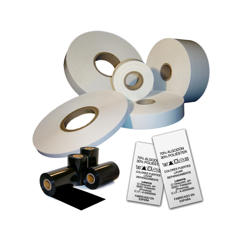 Diese Bänder können mit Thermotransfer-Wachs-oder Harz-Farbband schwarz (Ribbon)für Textilien bedruckt werden, abrieb-und waschfest