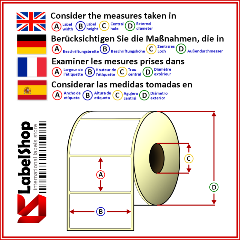 Las etiquetas son troqueladas una por una y pueden funcionar tanto en impresoras de transferencia térmica o térmica directa con sensor lateral y central(célula fotoeléctrica)