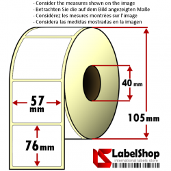 Rouleau à deux pistes d' étiquettes autocollantes en vélin blanc TOP- 57x76 (Les étiquettes ont besoin du ruban pour être imprimées)