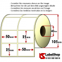 Les étiquettes sont découpées et peuvent être imprimées avec imprimantes thermiques directes ou à transfert thermique avec capteur étiquettes (photocell) latérale ou central.